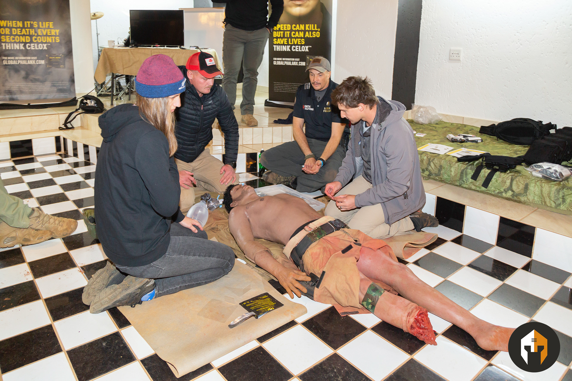 Hemorrhage control including immediate action drills for tourniquet application throughout the course